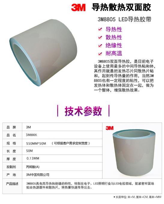3M8805 规格:550mmx66m 厚度:0.13MM 导热胶 颜色:白
