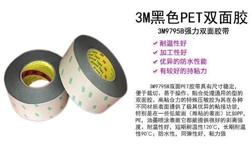 适用范围:3M9795B黑色双面胶在环保方面符合ROHS法规要求,广泛地用 在金属、铭牌、塑料、手机视窗、屏幕、框体、喇叭网、麦拉片等电子产品适用于塑料、金属等多种材料的粘接,用于铭板粘接时,可以起到遮光的作用。