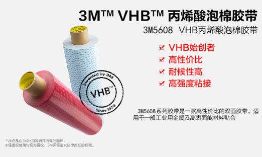 3M5608A-WP泡棉双面胶属于3MVHB胶系(压敏胶系),厚度0.8MM,具有超强的粘性,抗紫外线、耐溶济性好,还具有柔软、贴服性好等特性,具有高拉伸力,剪切强度,可以用于取代螺钉、柳钉、点焊等传统固定方法, 用双面胶带固定能使产品表面更为光滑、美观、操作更加简单、密封性更好、效果更为持久、拆装十分方便。