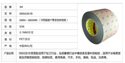 3M55261B厚度仅为0.1MM超薄双面黑色PET胶带,可应用于医用或者非医用诊断测试绷带的粘结,LCD泡棉粘结,话筒网孔和滤波器的粘结,LCD垫片粘结,手机附件的粘结,背光源组件如框体,反光片,遮光片,折射片等的粘结等。